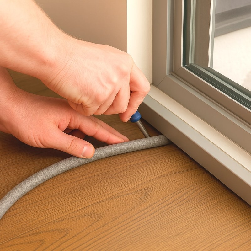 - Wcisnąć sznur o średnicy dopasowanej tak, aby lekko zakleszczył się w szczelinie.
